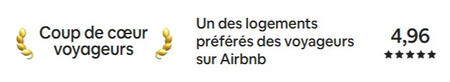 Airbnb : entre 125€ et 145€ par nuit (selon la saison).